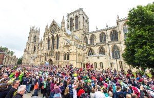 Picture by Alex Whitehead/SWpix.com – 06/07/2014 – Cycling – Tour de France 2014: Stage 2, York to Sheffield – Yorkshire, England – The peleton ride past York Minster.