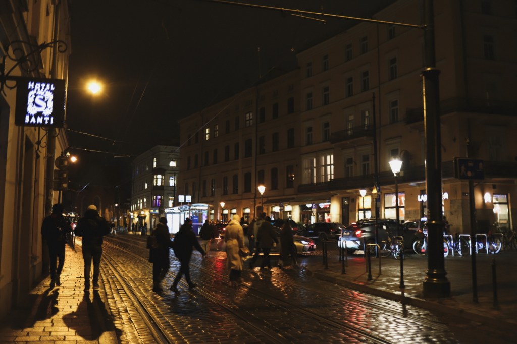 Am iesit din aeroport si ne-a lovit frigul. Fulguia, batea vantul si era un frig de ne ingheta sufletul. Ne-am luat cazare la un hotel aproape de centrul vechi (stiut de Andrei de la vizitele lui corporate de pe vremea cand lucra in Olanda si avea intalniti cu echipa din Polonia), numit B&B Hotel Krakow (nothing fancy, pur functional, dar aproape de centru). Am ajuns rapid cu autobuzul 300, luat din fata aeroportului, la 30 de minute distanta. Pana am ajuns la hotel se inoptase deja (uitasem sa luam in calcul faptul ca ne aflam mai la nord si ca se va face noapte mai devreme ca in Bucuresti), dar chiar si asa, ne-am planificat sa stam toata seara in oras. Frig, nefrig, voiam sa stam afara. Am pus colanti pe sub pantaloni, pulovere de lana, caciuli si manusi si am mers in centru!