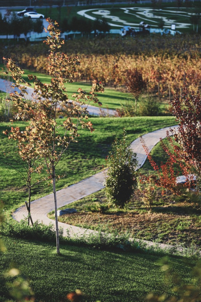 Zona de parc se poate vizita si de cei care vin doar la masa la Casa Timis (nu doar de cei care stau cazati) iar noua ni s-a parut minunata. Nu stim un alt loc in Romania unde sa existe atat de mult spatiu pentru plimbat si petrecut timpul afara. Sunt multe alei pavate pe care se poate merge linistit cu carucioarele sau cu bicicletele, sunt multe locuri de joaca pentru copii si diferite zone de relaxare. Noi ne-am adus bicicletele special pentru a ne plimba cu ele cat mai mult si chiar asta am si facut, am incercat sa profitam cat mai mult de aleile multe si lungi. Cu singura mentiune ca fiind atat de sinuoase (domeniul este construit pe dealuri), ne-a fost un pic greu cu bicicletele. Avem nevoie de conditie fizica mai buna :))