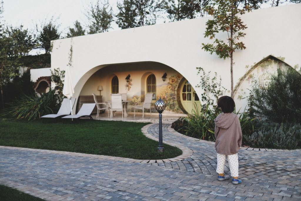 Dau timpul inapoi, acum mai bine de cinci ani, prin iunie 2018, cand abia il nascusem pe Alexei si inca eram in ceata primelor zile de cand devenisem parinti. Cand nu stiam exact cand era zi si cand era noapte, cand ni se parea ca totul se schimbase complet si ca lumea noastra, de calatori fara responsabilitati reale in viata, nu avea sa mai fie niciodata la fel. Imi amintesc cum ma gandeam ca nu vom mai putea calatori niciodata si cum speram sa putem face si cea mai mica plecare din Bucuresti. Si in contextul acesta mi-aduc aminte de cea de-a treia saptamana de viata a lui Alexei, cand ne-am urcat in masina si am condus pentru prima oara un drum mai “lung” (de o ora, insa la acel moment, chiar parea o eternitate :D) catre Conacul Domnitei Ralu. Actuala Casa Timis. Din satul Chitorani, in Prahova. Cinci ani mai tarziu am revenit in acest loc si exceptand casa principala, parca am ajuns intr-un loc complet, complet nou. Vazusem in social media cat de mult s-a schimbat locatia, cat de mult au construit in preajma conacului principal si cate facilitati grozave au inclus, insa pana nu am ajuns acolo, nu am realizat cat de complex a fost acest proiect si cat de mult s-a transformat pur si simplu locul acesta. Prima senzatia pe care am avut-o cand am ajuns a fost ca am pasit in Middle Earth. Sau ca ne-am intors in Hobbiton, in Noua Zeelanda. O spun cu entuziasmul unui fan inrait de Stapanul Inelelor, chiar daca nici macar in acest moment nu am citit cartile si nici nu am vazut filmele (cu siguranta o vom face impreuna cu copiii, cand mai cresc un pic). Totul pare ca e facut special ca sa te faca sa te simti pe un platou de filmare. Sau intr-un parc tematic. In orice caz, fix cat sa te transpuna intr-o fantezie, intr-o poveste. Lucru pe care nu l-am intalnit de multe ori in Romania.