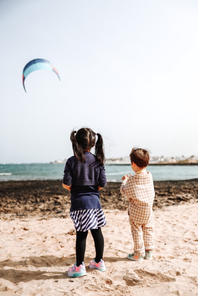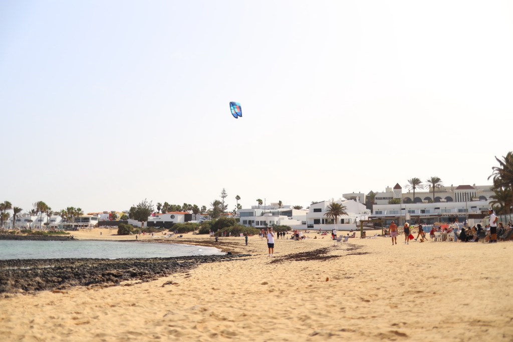 Ei bine, plajele din preajma orasului Corralejo erau bestiale, cel putin pentru noi erau perfecte. De la Montana Roja, vulcanul stins pe langa care treceam zi de zi in drumul nostru spre plaja si pana dupa Corralejo, sunt nenumarate plaje minunate. Largi, cu nisip fin, apa turcoaz, printre dune si cu multi, foarte multi surferi (kite-surferi mai degraba), mare amuzament pentru copii, fireste 🙂 Si acum ne mai povesteste Alexei cum isi dadeau “domnii surferi” placile cu ceara “ca sa alunece pe valuri”. Nu am putea spune ca vreuna anume a fost mai frumoasa decat cealalta, erau destul de similare, insa ne-a placut enorm de mult zona aceasta, a fost perfecta pentru noi si pentru copii (veneam dimineata cu ei pe plaja si stateam pana pe la 11) si a fost minunat ca erau atat de aproape de casa (de mers cu masina, nicidecum pe jos). Nu am intrat in ocean, doar foarte putin cu picioarele, apa era destul de rece, insa in mijlocul zilei era minunat de stat la plaja. Nici cald, nici racoare, dar soarele totusi ardea, chiar daca nu il simteam (iar noi adultii neglijenti chiar ne-am cam ars pentru ca am omis sa ne dam si pe noi cu crema solara, nu doar pe copii).