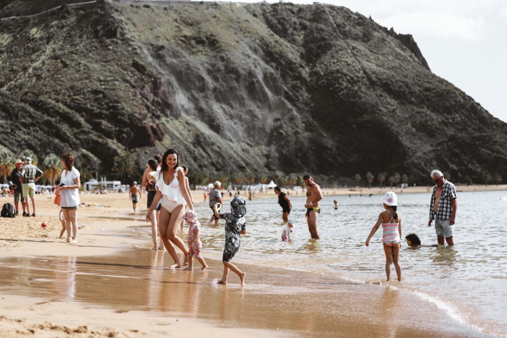 Dupa un drum destul de lung si istovitor, in prima zi am fost tentati sa stam de dimineata pana seara doar in complexul in care ne-am luat cazarea. Erau asa de tentante piscina si vremea incat n-ar fi sunat deloc o zi de leneveala completa. Insa fiind cu totii foarte entuziasmati de inceputul de vacanta, chiar daca eram extrem de obositi (pentru ca fiecare familie a primit trezirea la prima ora, desigur, #lifewithkids) ne-am mobilizat si motivat unii pe altii sa ne dam intalnire la plaja Las Vistas, din sud, in Los Cristianos. Nu aveam asteptari prea inalte de a petrece fiecare moment impreuna (zece adulti si sapte copii mici, chiar ar fi fost complet imposibil), asa ca primele doua zile au fost de tatonat si incercat. Insa ce ne-am propus de la bun inceput a fost sa profitam de singura fereastra din zi cat de cat previzibila: dimineata, pana in somnul de pranz al copiilor. Astfel ca in majoritatea zilelor, am cam reusit sa ne vedem dimineata, intr-un punct stabilit de comun acord cu o seara inante, urmand ca la pranz sa ne separam si sa ne intalnim (sau nu, in functie de programul copiilor), dupa amiaza.