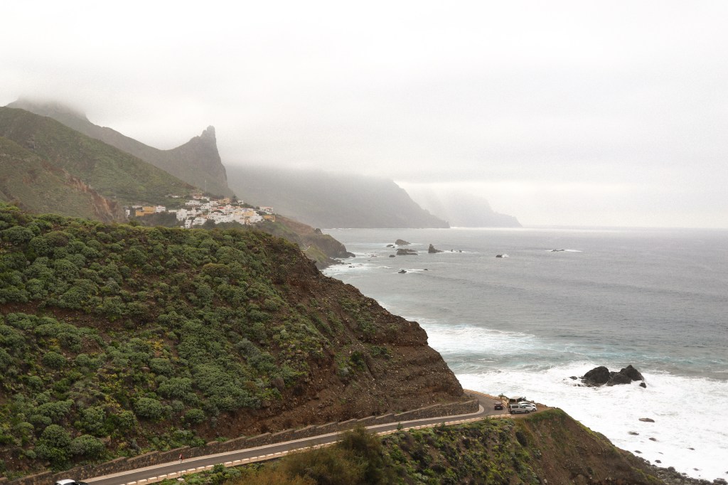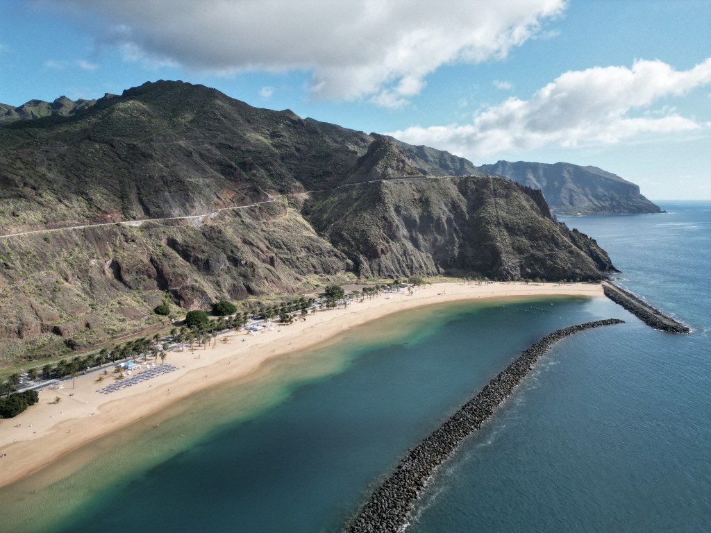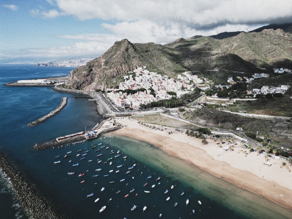 Nu am avut un itinerariu stabilit in aceasta vacanta, asa ca ne conturam zilele una cate una, stabilind cu o seara inainte ce vrem sa vedem. Asa ca pentru a doua zi am sugerat sa vedem Playa Las Teresitas, la nord de capitala Santa Cruz, in principal pentru ca apare in mai toate topurile de plaje potrivite pentru familii. Si pentru ca prietenii nostri care se aflau pentru a patra oara pe insula ne-au recomandat-o, pentru nisipul alb, pentru apa mica si lina si pentru peisajul frumos. Plaja se afla in satucul San Andres, un sat mic, pescaresc, cu foarte multe restaurante, are o parcare uriasa (si mentionez asta pentru ca la multe alte plaje parcarile fie nu erau, fie erau foarte putine locuri si acelea mereu pline), multe facilitati (toalete, cabine de schimb, dusuri, sezlonguri, baruri – care insa au fost complet inchise, pe toata perioada cat am stat in Tenerife, nu stim exact de ce), umbra in unele zone, apa foarte lina (e construit un dig in larg, care “inchide” apa in zona plajei, facand-o foarte linistita, fara valuri), imprejurimi foarte frumoase, fiind inconjurata de munte si nisip alb si fin. Este insa o plaja artificiala (de fapt, si Las Vistas din Los Cristianos este tot artificiala), construita cu nisip alb adus din Sahara. Plaja initiala era o plaja micuta (de fapt erau trei plaje, una dupa alta), cu pietre si nisip negru, muuult mai inguste decat cea de acum, si pentru a o face mai interesanta pentru turisti au schimbat nisipul in nisip alb, au extins-o, au construit digul si au facut-o cat mai atragatoare. Plaja Las Teresitas este una dintre preferatele noastre din Tenerife, ne-am intors in repetate randuri aici, le-a placut si copiilor foarte mult. De sus, de pe muntele de la capatul plajei, din punctul de belvedere Las Teresitas (Las Teresitas Viewpoint) se vede o priveliste absolut superbaaaaaa deasupra plajei, satului San Andres (cu multe casute albe) si muntii din parcul national Anaga. Nu este tocmai un punct de belvedere propriu zis, este fix un… punct intr-o curba, destul de nesigur ca localizare, nu sunt locuri de parcare si nu e nimic amenajat, insa este marcat in toate ghidurile despre Tenerife ca avand una dintre cele mai spectaculoase privelisti de pe insula. Si nu putem contrazice ce se spune, chiar se vede superb.
