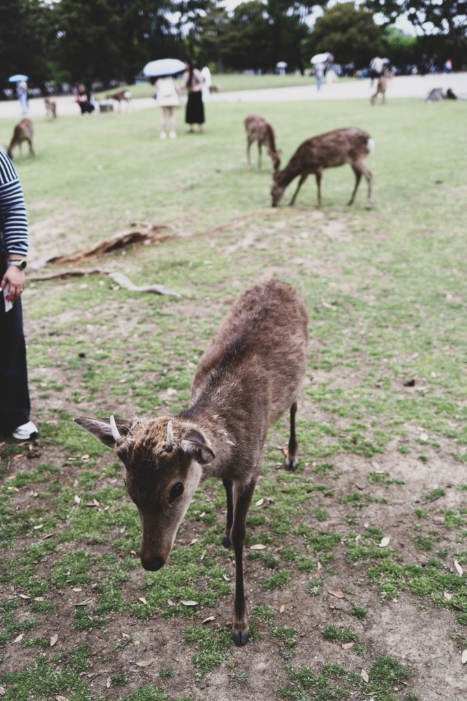 Nu am nimerit in sezon de imperechere, cand de regula masculii devin mai teritoriali si pot fi un pic mai agresivi decat in mod normal. Insa chiar si asa, caprioarele din Nara nu mai sunt atat de pasnice cum obisnuiau sa fie. Si desigur, stim exact care este cauza acestei schimbari. Supraturismul. Si nu doar asta (desi poate fi si acesta un motiv suficient ca sa streseze caprioarele), ci faptul ca multi turisti nu respecta aceste animale si regulile scrise peste tot (nu degeaba au devenit virale videourile pe internet cu turisti care le tachinau, trageau de coarne, alergau, speriau, le hraneau cu altceva in afara de biscutii aprobati, shika senbei etc).