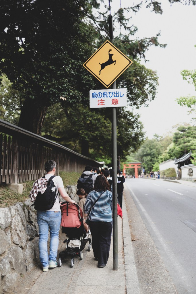 Nara este un oras extrem de frumos (linistit nu mai e, insa frumusetea nu i-o poate lua nimeni). Templul budist Todaiji este superb (extrem de cunoscut pentru uriasa statuie a lui Buddha, din bronz), altarul Kasuga Kaisha cu faimoasele sale felinare la fel (de altfel intregul oras este renumit pentru importanta sa religioasa), parcul caprioarelor este si el foarte frumos, istoria locului este impresionanta (Nara a fost una dintre capitalele imperiale ale Japoniei). Inclusiv ideea de a vedea atat de multe caprioarele peste tot este minunata. In Japonia caprioarele sunt considerate sacre, mesagerii spiritelor sacre kami din religia sintoista. Insa pentru noi dragele caprioare au fost motivul pentru care a trebuit ne mobilizam si sa plecam mai devreme spre Kyoto (lasand nevazute si templul, si altarul :D). Si asta pentru ca au fost suficient de agresive incat sa ii sperie foarte tare pe copii.