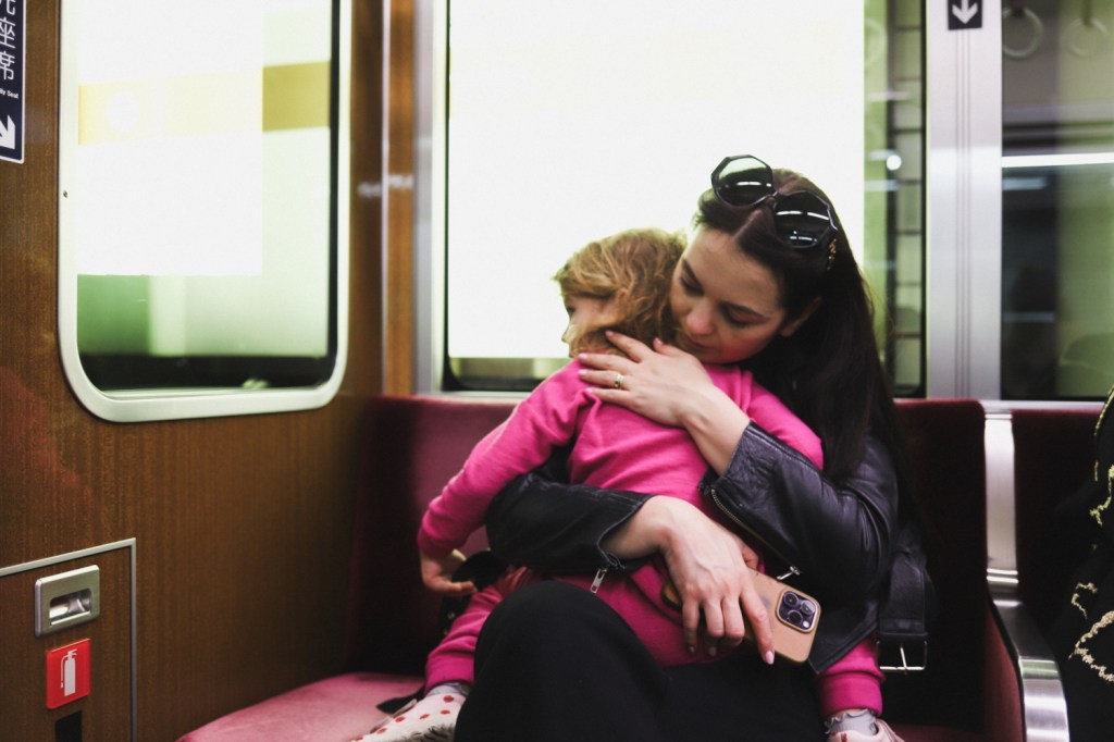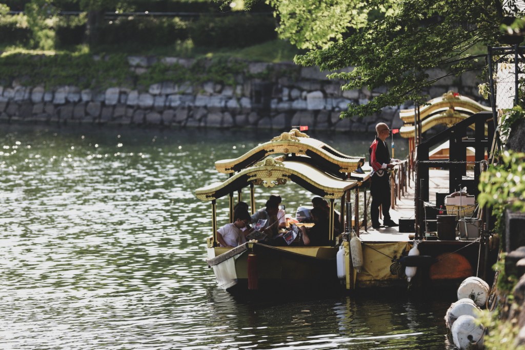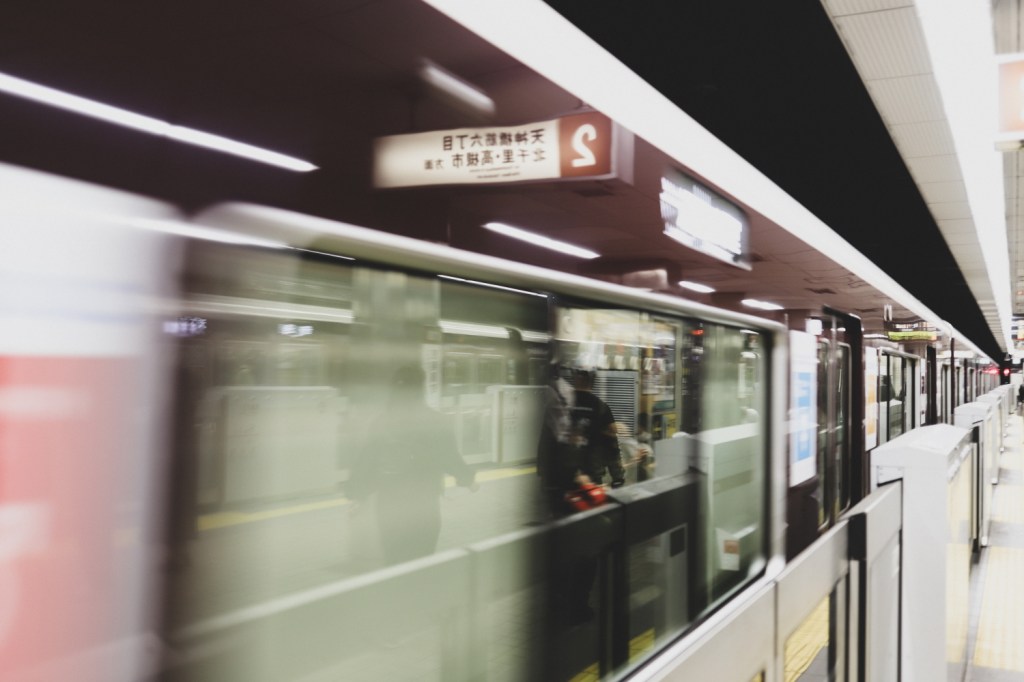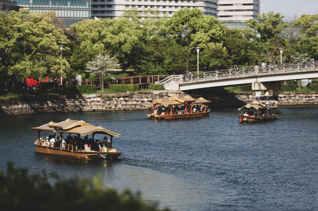 Am lasat bagajele si ne-am dus direct catre Osaka Castle, una dintre constructiile cele mai reprezentative din Osaka. Primele calatorii cu trenul/metroul din Osaka au fost de-a dreptul impresionante, o data pentru ca uitasem ce inseamna curatenie in Japonia si apoi pentru ca ne asteptam cu totii la scenariul acela din videourile de pe internet, in care oamenii se imping ca sardinele in trenuri, de nu pot respira. Pe cand aici… totul era linistit, suficient spatiu pentru oricine, nimeni nu vorbea in tren, nimeni nu manca in tren. Ba dimpotriva, vedeam frecvent capete cazute in pe pasagerul de pe scaunul alaturat si o liniste de ne simteam prost cand se mai harjoneau copiii. Iar trenurile ne-au placut tare mult, cu estetica lor retro, canapelele verzi sau roz, din catifea, manerele rotunde, peretii captusiti cu lemn si culoarele care imitau parca gresia pe jos.