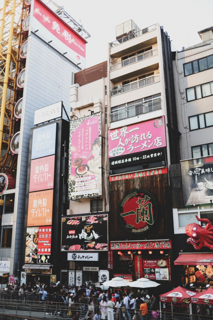 Am realizat ca planul de a face ceva linistit nu a fost neaparat cel mai intelept 😀 Pentru ca ne linistisem atat de tare incat abia mai eram in stare sa ne tinem pe picioare de somn. Aveam nevoie de ceva mai “turbulent”, care sa ne mai tina treji cateva ore. Nu intentionam sa ne fortam extrem de rau sau sa ne culcam foarte tarziu, dar aveam ca obiectiv sa nu adormim inainte de ora 8 seara. Asa ca… ce putea fi mai “turbulent” si mai vibrant si mai turbat ca zona Dotonbori? Zona cea mai nebuna, cea mai colorata (unii o considera chiar kitchoasa) a orasului, cea mai plina de tentatii culinare (exista un motiv intemeiat pentru care Osaka si-a capatat renumele de “Bucataria Japoniei”).