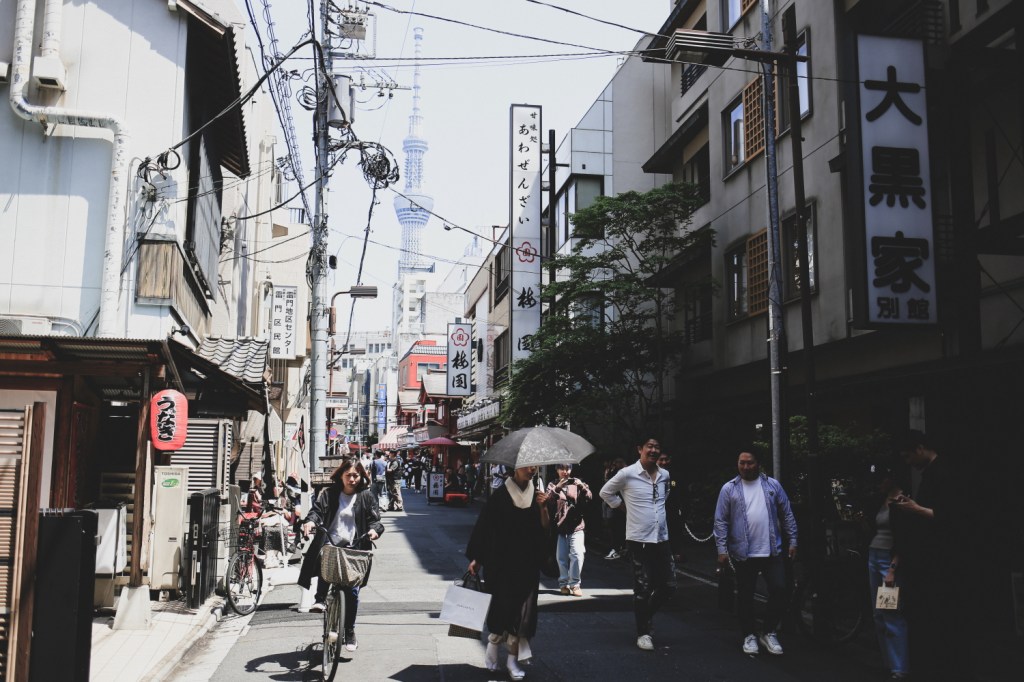 Templul Senso-Ji din Asakusa este cel mai vechi templu din Tokyo si este principala atractie din Asakusa. Templul in sine si poarta Kaminarimon, de la intrare, cu lanterna imensa. Ii spun atractie pentru ca devenit un loc extrem de turistic, intesat de turisti si de ricse carate de japonezi (o chestie foarte touristy si recomandata, care pe noi insa nu ne-a tentat deloc). Insa pe langa templu, printre stradutele adiacente, este o atmosfera foarte vibranta, plina de magazine si restaurante. Se spune ca aici este o parte a orasului care aminteste de Japonia cea veche, insa eu nu am simtit acest lucru, nici acum, nici acum zece ani cand am vizitat aceasta zona din Tokyo. Dimpotriva, mi s-a parut o zona foarte comerciala (desi foarte draguta), cu multe restaurante si mai ales multe dulciuri delicioase. Am incercat si noi faimoasa inghetata cu pasta de matcha de la Chacha Futatsume (pe strazile din Asakusa) si ne-am lasat tentati si de alte bunatati din piata.