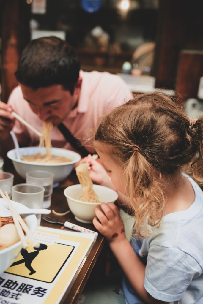 Activitatea zilei a fost sa ne plimbam si pierdem pe strazile din Asakusa, nu am avut niciun alt plan pentru ziua aceasta. Era teoretic o zi mai linistita ca celelalte, voiam sa mai incetinim putin ritmul si sa ne bucuram mai mult de zona aceasta care ne place mult, asa nebuneasca si agitata cum este. Am luat pranzul la un restaurant foarte simplu, deloc pretentios, cu cateva mese afara si 2-3 locuri la interior, numit Ramen Menmaru (destul de aproape de templul Senso-Ji). Un ramen urias care ne-a placut foarte mult. De fapt ramen-ul, okonomiyaki si noodlesii yakisoba au fost mancarurile cele mai apreciate de copii in Japonia, asa ca le-am tot repetat pe parcursul vacantei. Am fi incercat mai multe mancaruri noi, dar aveam cateva restrictii (spre exemplu de gyozas nici nu au vrut sa auda, nu le-a placut deloc).