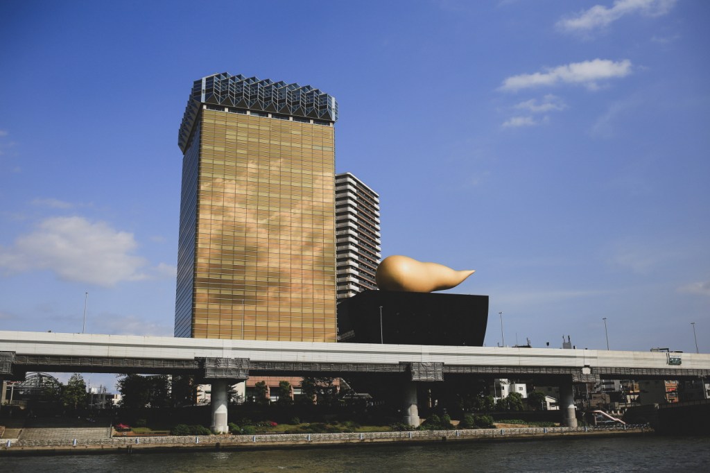 Iar dupa plimbarea un pic ametitoare prin toata multimea din Asakusa, am luat o pauza pe marginea raului Sumida, unde se afla si un parc. Ne-am uitat la trenurile care treceau pe pod (si care mai apoi intrau literalmente in cladiri, pe acolo le era traseul), la barcile turistice care treceau cu excursiile lor pe raul Sumida si la skyline-ul cu faimosul turn Skytree (pe care nu l-am pus in itinerariu pentru ca ni s-a parut a fi un pic cam prea… pentru turisti :D). Ah, si vrand nevrand ne-a sarit in ochi sculptura aurie, cunoscuta ca “the golden poo“. Nu asta i-a fost menirea atunci cand a fost construit, trebuia sa fie o statuie verticala care sa simbolizeze o flacara aurie, daaaaar a devenit faimoasa pentru forma actuala :)) Avand in vedere ca in Tokyo exista si un Poo Museum (la care pfiu, am scapat, nu am mers, desi Andrei a to tinsistat), nu parea deloc desprins din peisaj :))