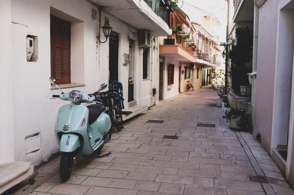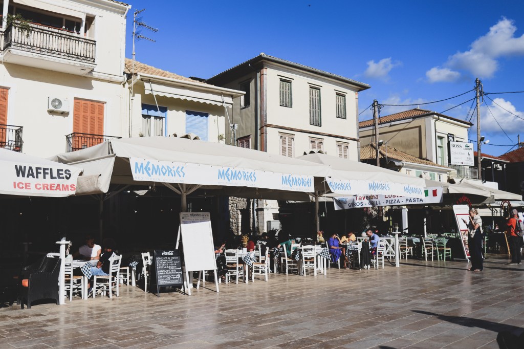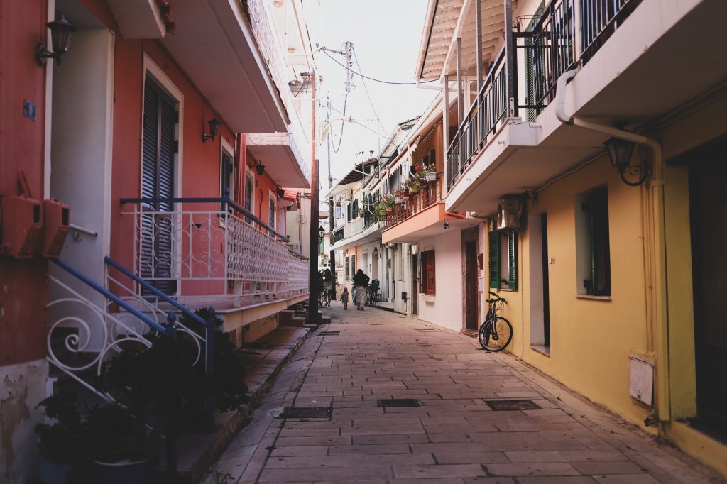 Doamna care avea grija de cazarea noastra ne-a spus ca in Sambata Mare are loc o parada in capitala insulei, cu fanfara si farfurii de lut sparte in urma lor. In Grecia, Pastele ortodox este o sarbatoare extrem de importanta (ca si in Romania de altfel), cu foarte multe obiceiuri si cu mult sarbatorit. Si cum nu aveam nicio sansa sa ajungem sa luam lumina in noaptea de inviere, am vrut sa simtim putin din cultura si obiceiurile lor cu aceasta parada din centrul orasului. A fost un pic de nebunie, fara doar si poate. Si mult asteptat, si multa galagie, si un pic de vacarm cu toate farfuriile care se spargeau in urma fanfarei. Dar a fost extrem de interesant (desi pentru Anastasia a fost un haos cam mare, s-a speriat si nu i-a placut toata agitatia). Dupa parada ne-am plimbat prin centrul orasului Lefkada si abia atunci am vazut cat de frumos si fermecator este orasul. Doar plimbandu-ne printre stradutele mici, cu case traditionale, colorate, cu rufele atarnate pe sfoara, cu usile vopsite in culori, cu scuterele lasate neglijent in fata caselor, am vazut cat de dragut este centrul. Si oricat ne-am fi plimbat si ratacit, intr-un fel sau altul ajungeam mereu in acelasi punct: portul si marea.