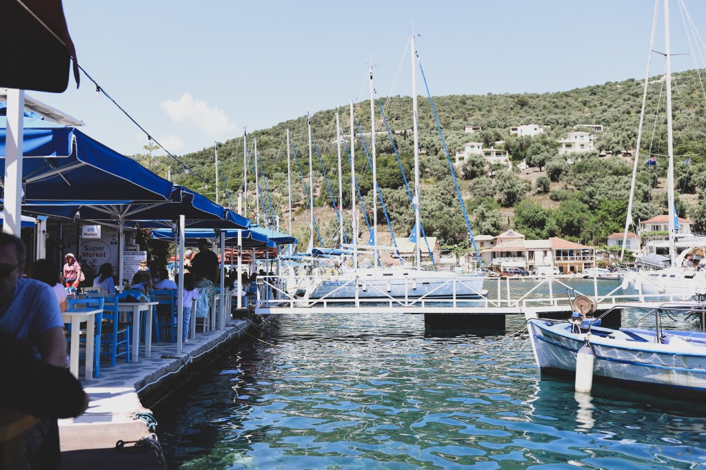 Apoi am mers in satul pescaresc Sivota, sa luam pranzul. Nu credeam ca vom gasi prea multe restaurante deschise in ziua de Paste dar… erau toate deschise 🙂 Satul acesta ne-a placut foarte mult, pe malul apei, in jurul portului, cu multe terase si multe barci. Foarte multi oameni veneau aici pentru a inchiria barci/veliere/catamaran si adevarul e ca ni s-a cam pus pata si noua pe ideea aceasta de vacanta pe barca. Aduce un pic cu stilul de calatorit pe care il avem cu autorulota, dar pe apa. Singurul inconvenient e ca nu prea avem habar nimic despre barci, nu am mers niciodata si nu prea ne-am descurca fara un skipper cu experienta. Si cu copiii parca ne e inca teama 🙂 Dar ne-ar placea pentru noi doi, daca vom avea vreodata ocazia sa mergem in cuplu, pare o optiune foarte interesanta (si noua pentru noi) de a calatori pe insulele grecesti. Am mancat la taverna 12 Gods, am ales-o dupa recenziile de pe Google Maps.