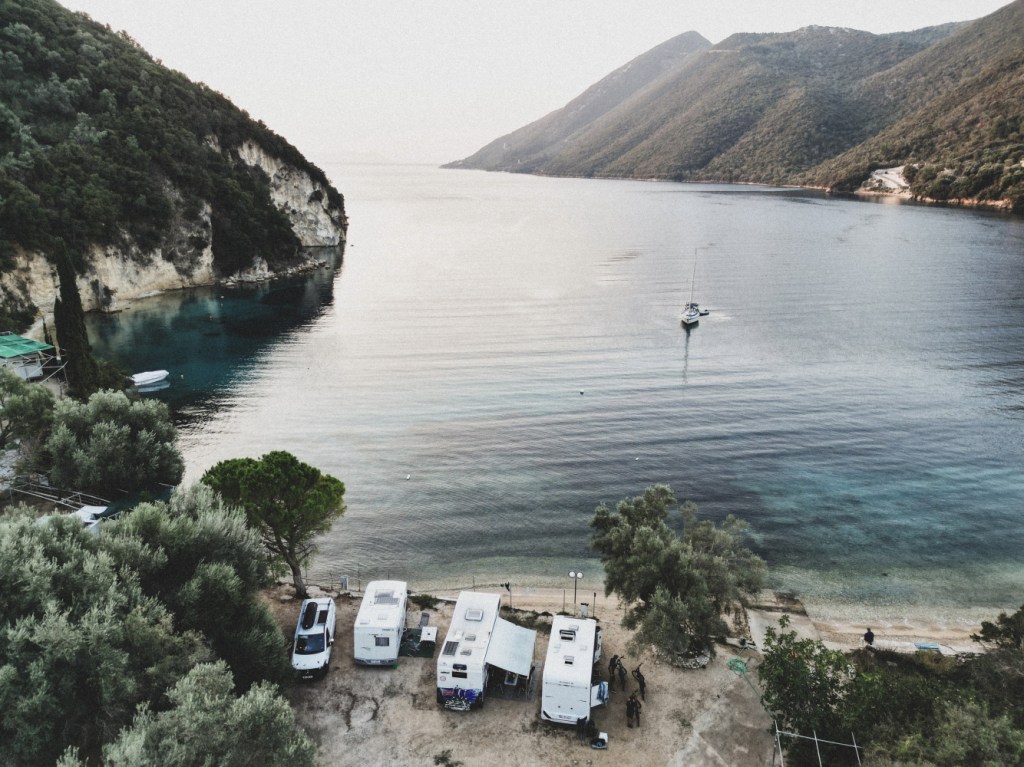 In cea de-a patra zi am pornit catre Lefkada, cu intentia de a campa la plaja Khatisma. Foarte multe campinguri nu sunt pe insula si din pacate cele mai multe erau deja inchise. Asa ca am decis sa campam off camping pentru o noapte, la plaja Khatisma, unde am avut surpriza sa vedem ca (probabil) toti oamenii veniti cu autorulotele si camperele in Lefkada au avut aceeasi idee. Era plina plaja de autorulote campate pe marginea plajei! Cu greu am reusit sa ne gasim si noi loc (11 autorulote :D) insa a meritat efortul. A fost o zi minunata, apoi o seara pe masura. Am stat la plaja, am intrat in baie, copiii s-au distrat si alergat pe plaja pana tarziu. Nu sunt facilitati pe plaja (pana si barul de pe plaja, Copla, unde am fost in primavara, era inchis) dar… nici nu aveam nevoie 🙂 Ne-a ajunge marea. Si adevarul e ca am fi stat chiar si mai multe zile, daca am fi putut (campatul in afara campingurilor nu este permis in Grecia, insa in extra sezon este tolerat daca nu se campeaza mai mult de o noapte). Era ideal sa ii avem pe copii (toti!) in fata noastra, pe plaja imensa, sa nu ne iasa din supraveghere niciun moment :)))