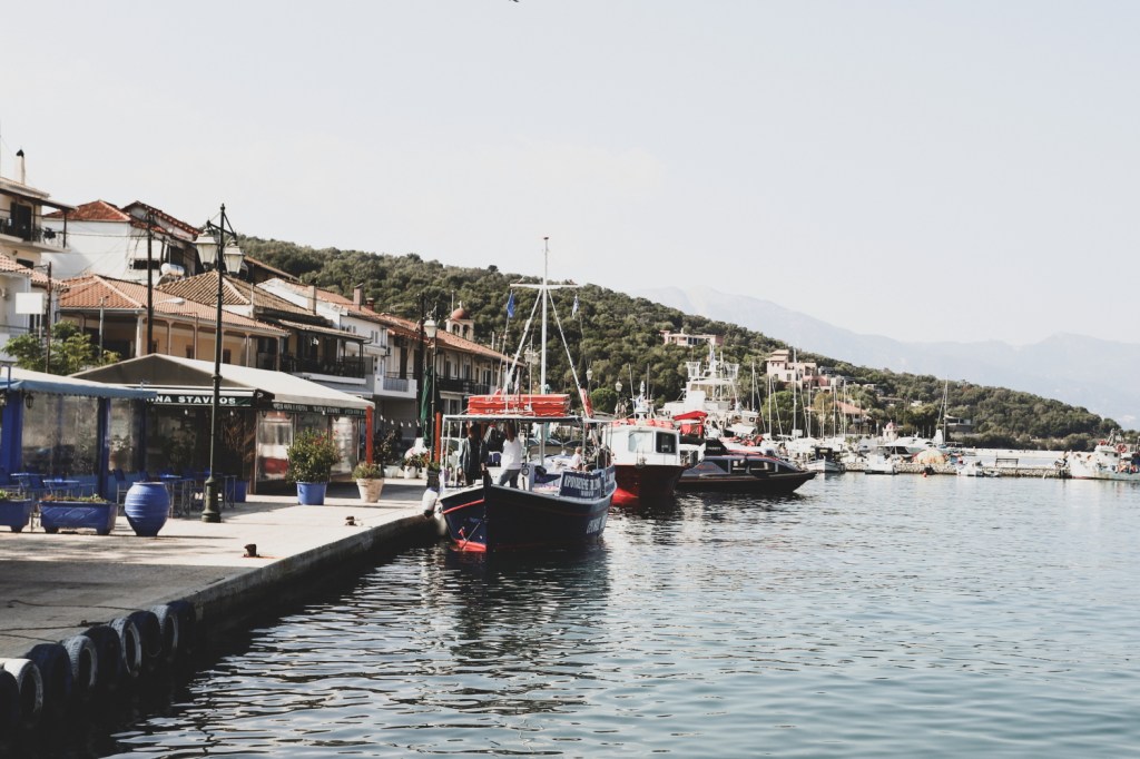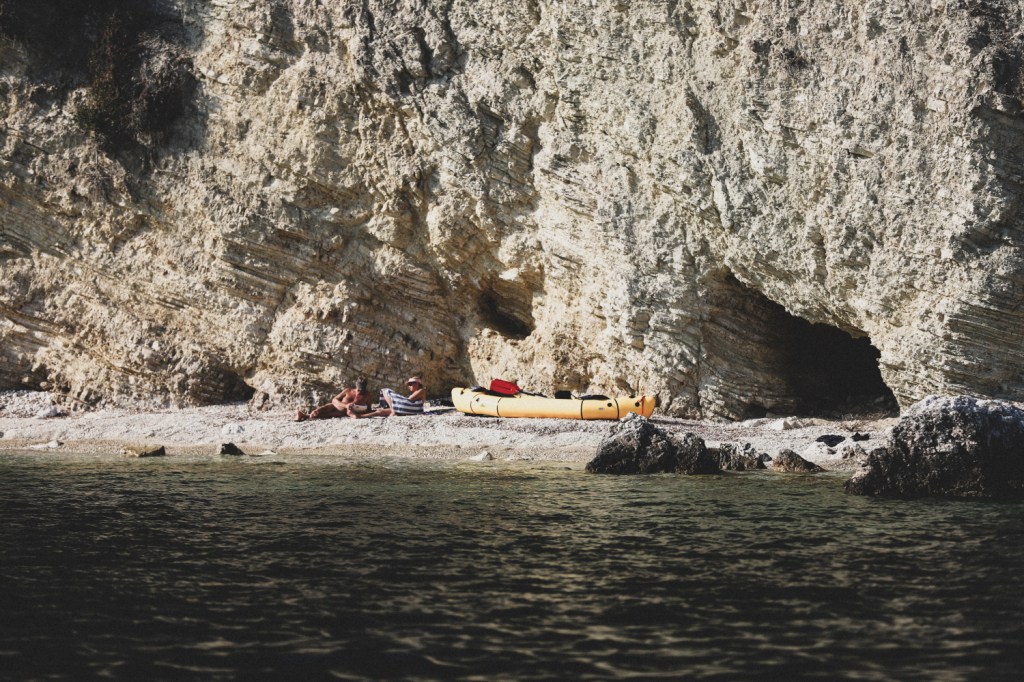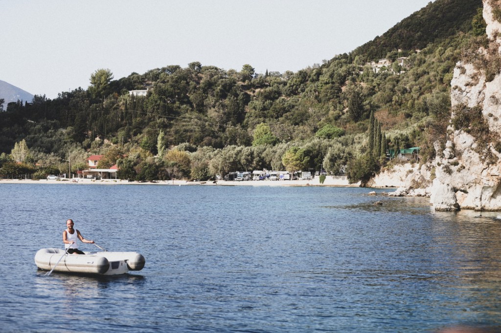 Cea de-a saptea zi a fost zi de explorare pe mare 🙂 Nu speram noi sa facem o excursie cu barca la inceput de noiembrie insa daca am vazut ca e vremea atat de buna si proprietarul campingului atat de amabil incat sa se ocupe de toata organizarea… am zis ca de ce nu 🙂 Am inchiriat o barca suficient de mare pentru toate cele 11 familii (23 adulti si 20 de copii), care ne-a luat fiiiiix din camping 🙂 Nu a fost nevoie sa ne deplasam deloc, am intrat direct de pe plaja in barca :))) Habar nu aveam niciunul dintre noi care e planul excursiei dar ne-am bazat pe cei cu barca. Care ne-au plimbat intai in preajma insulei Meganisi, in sud estul Lefkadei, unde am si facut un mic popas de balaceala (pe o plaja sigur foarte fancy in sezon dar aproape abandonata acum). Urmand ca apoi sa ne lase in micutul sat Vathy, de pe aceeasi insula, pentru un pranz rapid. Mai toate restaurantele erau inchise insa am gasit un loc unde sa putem bea o cafea.